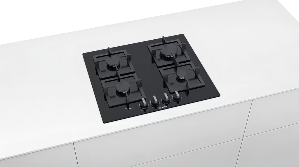 Anafe a gas Bosch Serie 6 con 4 hornallas para mayor versatilidad en la cocina.