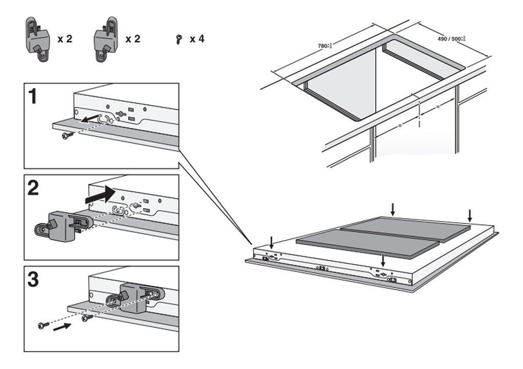 - Dimensiones de encastre (ancho x fondo): 750/780 mm x 490 mm