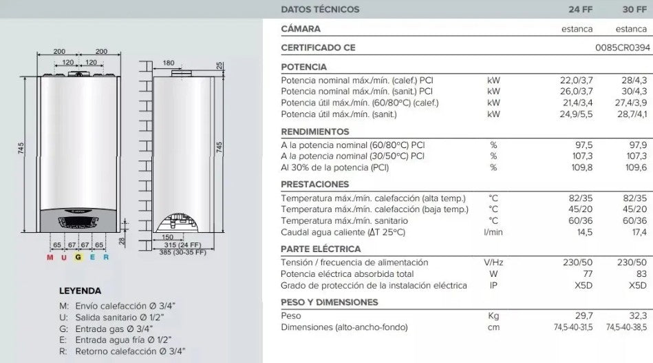 Este modelo incorpora control digital avanzado, lo que permite programar, ajustar y supervisar de forma precisa la temperatura de calefacción y agua caliente según las necesidades de cada usuario. La caldera se distingue por su funcionamiento estable, seguro y silencioso, ideal para uso residencial y espacios medianos donde se busca confort térmico constante.