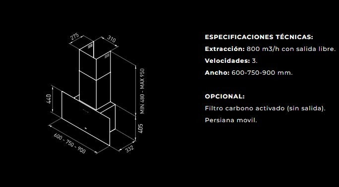 Acabado en pintura epoxi negra, vidrio negro templado.