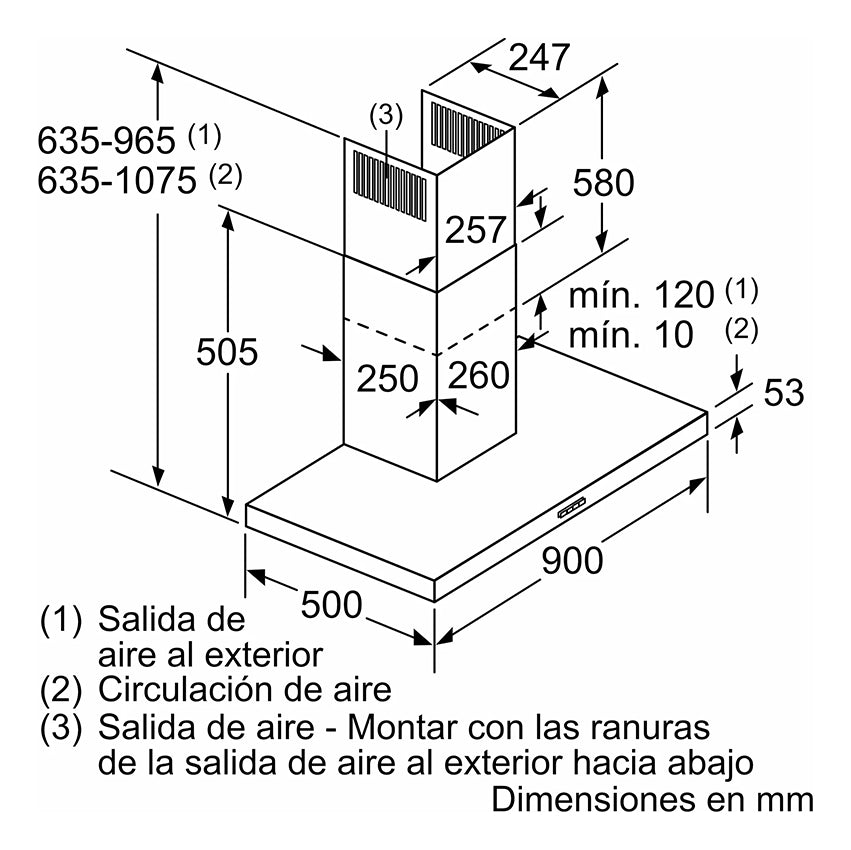 - Posibilidad de instalarse en recirulación o con salida al exterior