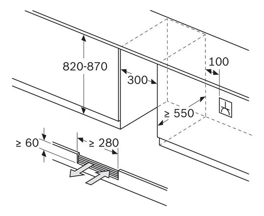 - Dimensiones de instalación necesarias (H x W x D): 820 x 300 x 550 mm