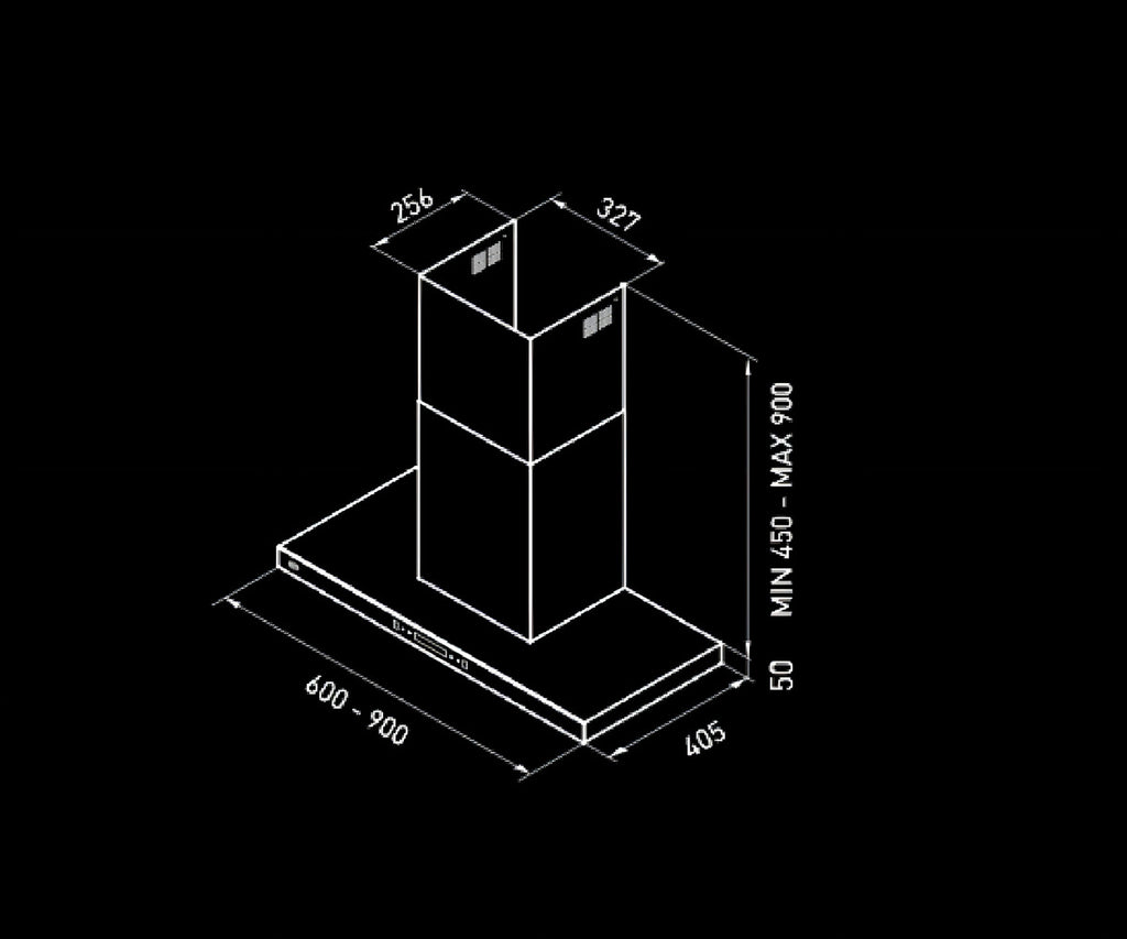 ACABADO: Vidrio negro templado, pintura epoxi negra.