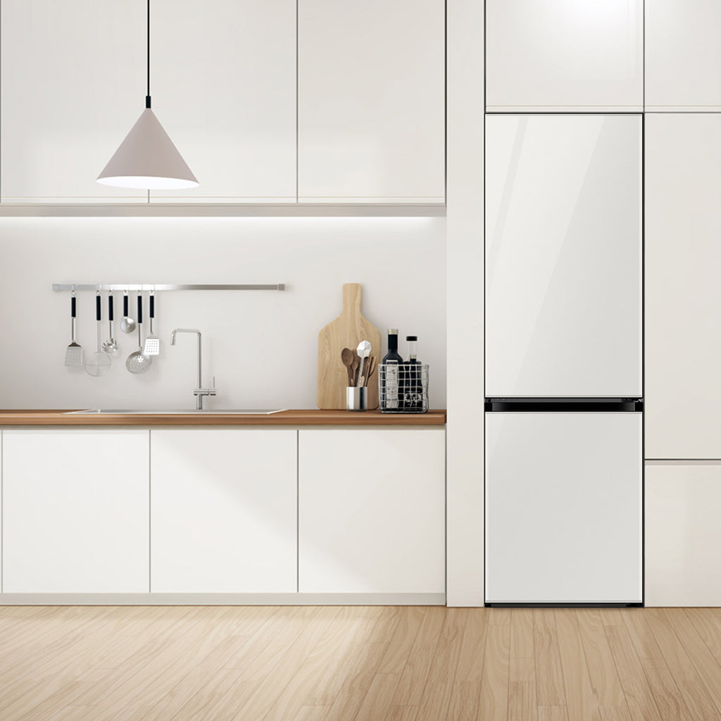 Elige la dirección de apertura de tu refrigerador y congelador con las Puertas Reversibles. Esto significa que siempre será ideal para la disposición preferida de tu cocina. Cada puerta puede invertirse simplemente cambiando las bisagras.
