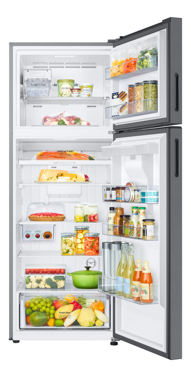 La Heladera Samsung Inverter de 536 litros es la solución ideal para quienes buscan eficiencia y funcionalidad en su cocina. Con un diseño elegante en color plateado, esta heladera de dos puertas combina un freezer superior y tecnología No Frost, garantizando un almacenamiento óptimo de tus alimentos sin la necesidad de descongelar.