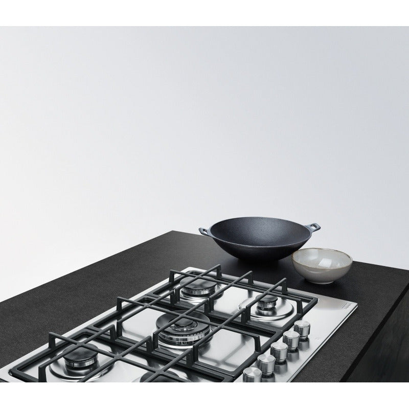El anafe a gas Smart FHSM 755 4G DCL XS C de Franke es una opción robusta y eficiente para cualquier cocina moderna. Con cinco quemadores, incluyendo un potente quemador triple corona, ofrece gran versatilidad para diversas preparaciones culinarias. Su superficie de acero inoxidable no solo garantiza durabilidad sino que también facilita la limpieza. Los mandos frontales permiten un control preciso de la llama, asegurando una cocción eficiente y segura. Este anafe combina funcionalidad avanzada con un diseño elegante, mejorando tanto la estética como la funcionalidad de tu cocina. Caracteristicas: 1 Quemador auxiliar - 1000 W (860kcal/h) 2 Quemadores semi rapidos- 1750W ( 1500 kcal/h) 1 Quemador doble corona - 3300w ( 2800kcal/h) 1 Quemador rapido - 2900w ( 2490 kcal/h) Rejilas de fundicion Encendido electrnico a una mano valvula de seguridad