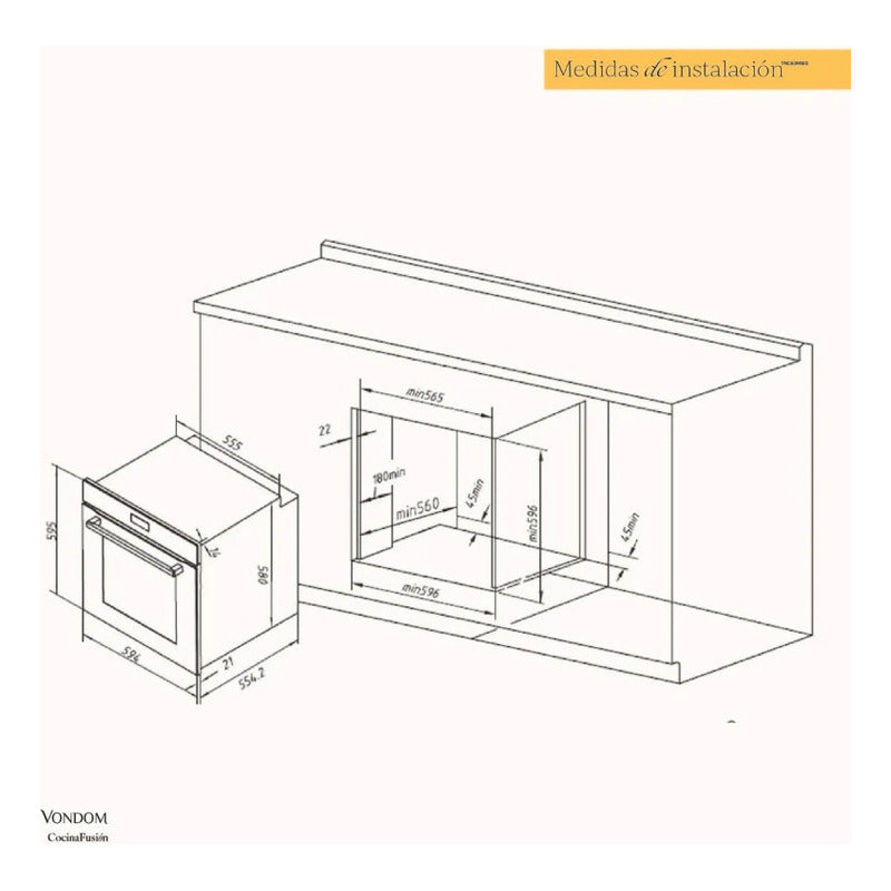 Horno Eléctrico Empotrable Vapor y Air Fry 60cm TNC60HEBS Horno Eléctrico Empotrable Cocción Vapor Profesional y AirFry Ultra Capacidad 81L - 60 cm Renová tu cocina con nuestro horno eléctrico empotrable multifuncional en color negro. Con 81 Litros de Capacidad y 18 Funciones de Cocción, incluido Air Fry, este horno es ideal para preparar comidas abundantes y crujientes con menos aceite. La Cocción Profesional al Vapor, con 8 Funciones específicas, garantiza platos jugosos y perfectamente cocidos, realzando el sabor natural de cada ingrediente. La Pantalla Smart TFT y el Control LED Full Touch facilitan el manejo y ajuste del horno. Explorando la pantalla del horno, vas a encontrar Recetas Incorporadas que te facilitan la vida en cada preparación. La función de Easy Clean minimiza el esfuerzo de limpieza, y la Conexión Wifi te permite controlarlo desde cualquier lugar (la descarga de la app estará disponible en 2025). La seguridad está garantizada con el Bloqueo de Teclas Para Niños, y la Iluminación Interior te asegura una visión clara de tus preparaciones. Además, el Cierre Suave y los Rieles Telescópicos hacen que cocinar sea un placer. Este horno es la combinación perfecta de tecnología y diseño para crear momentos inolvidables. Las bandejas removibles con rieles telescópicos proporcionan una manipulación suave y segura, haciendo más cómodo el manejo de tus preparaciones. El rápido precalentamiento asegura que tu horno esté listo en minutos, optimizando tu tiempo en la cocina. El cierre suave de la puerta añade un toque de elegancia y practicidad, evitando golpes y garantizando una mayor durabilidad. Este horno eléctrico empotrable no sólo embellece tu cocina con su diseño moderno y elegante, sino que también te brinda la tecnología avanzada que merecés para crear momentos inolvidables y deliciosos en cada comida. Sentí la satisfacción de cocinar con un electrodoméstico que entiende tus necesidades y se adapta a tu estilo de vida, garantizando siempre resultados perfectos con el mínimo esfuerzo. Características Principales: - Color: Negro - Capacidad: 81L - Control led full touch - Cocción Vapor Profesional - 18 funciones diferentes de cocción - 8 funciones Vapor Profesional - Extra función de air fry - Bandejas removibles con rieles telescópicos - Modo Seguridad por medio del bloqueo de teclas para niños. - Precalentamiento rápido - Cierre suave - Iluminación interior Características técnicas: - Eficiencia Energética: A - Potencia: 2100-2500W - Temperatura: 30-260°C - Voltaje: 220-240 Vca - Frecuencia: 50Hz Medidas del producto: - Ancho: 59,4 cm - Profundidad: 55,4 cm - Altura: 59,5 cm Medidas con embalaje: - Ancho: 64,7 cm - Profundidad: 65,8 cm - Altura: 66 cm Peso neto / Peso bruto: - 35,5 kg / 39 kg Contenido de la caja: • 1 Horno eléctrico empotrable Cocción Vapor Profesional y AirFry - Ultra capacidad 81L Aviso legal • Eficiencia energética A. ----------------------------------------------------------------------------------------------------- Anafe A Gas Empotrable Vondom Acero Inox 60 Cm VAG60A4/EN Transformá tu cocina en un espacio donde la funcionalidad se une con la estética y el confort. Este anafe a gas de 60 cm fue diseñado pensando en quienes disfrutan del arte de cocinar y desean hacerlo con la tranquilidad de contar con un equipo confiable, potente y elegante. Con eficiencia energética A++, este anafe no solo te garantiza un rendimiento superior, sino también un consumo optimizado, cuidando tu bolsillo y el medio ambiente. Su estructura en acero inoxidable no solo aporta un estilo moderno y sofisticado, sino que además es resistente al uso diario y muy fácil de limpiar, ideal para quienes buscan practicidad sin sacrificar diseño. El encendido electrónico facilita el uso cotidiano, haciendo que poner en marcha tus preparaciones sea rápido y seguro. Además, los distintos tipos de quemadores te ofrecen la versatilidad que necesitás: desde el quemador auxiliar para preparaciones delicadas hasta el poderoso quemador triple corona, que concentra el calor de manera eficiente para cocciones intensas y rápidas. Los quemadores semi-rápidos completan una distribución perfecta del calor, dándote control total sobre tus recetas. Este anafe está hecho para acompañarte todos los días en las comidas simples y en esas cenas especiales donde la cocina se convierte en el corazón del hogar. Porque sabemos que cocinar no es solo una tarea, es una forma de cuidar, de compartir y de disfrutar. Con este anafe, vas a vivir una experiencia de cocina que se adapta a tu ritmo, potencia tus recetas y eleva el placer de estar en casa. Aviso legal • Su eficiencia energética es A++.