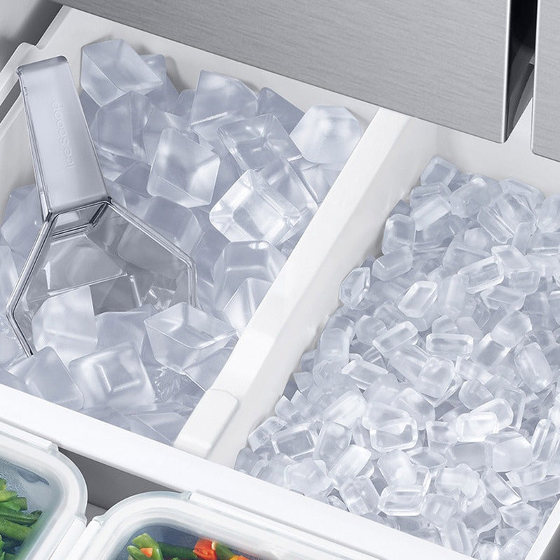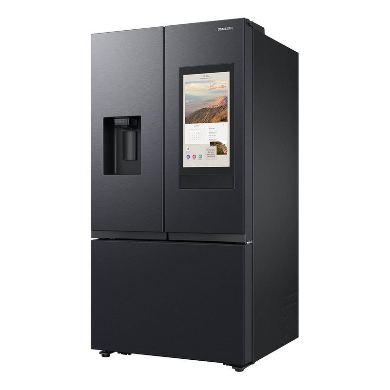 Heladera Samsung French Door Family Hub Inverter 853 L Family Hub 21,5'' | Dispenser agua y hielo | Fábrica de hielo automática | SmartThings (Android/iOS) | Digital Inverter | 845 L (853 L Bruta) | Eficiencia Energética A ES MÁS QUE UNA HELADERA Enriquece tu vida familiar con un mejor control, comunicación y entretenimiento. La pantalla Family Hub de 21,5" facilita el control de la heladera y el acceso a toda la información que desees. También proporciona una forma sencilla y divertida de compartir fotos, vídeos, mensajes y listas de tareas. El wifi integrado en la Family Hub te ofrece una forma simple de compartir imágenes, administrar calendarios familiares y mantenerte conectado. También podés usar aplicaciones de tu smartphone y reproducir música en Spotify. COMPARTÍ NOTICIAS Y RECUERDOS FAMILIARES Enriquecé tus conversaciones familiares compartiendo noticias, mensajes y recuerdos especiales en el Family Board. Solo tenés que usar la pantalla de inicio o tu smartphone y se sincronizará con Family Hub. Podrás mostrar fotos, publicar stickers, hacer dibujos, escribir notas a mano y hasta agregar un reproductor de música. MANTENETE INFORMADO MÚSICA Y ENTRETENIMIENTO ININTERRUMPIDO Ahora, cocinar y entretener a los invitados de tu fiesta es más fácil. Escuchá tus canciones o listas de reproducción favoritas sin interrupciones con Spotify. También podrás transmitir estaciones de radio globales, noticias, podcasts y programas de comedia con TuneIn. MIRÁ LA PANTALLA DE TU TELÉFONO O TV Mirá programas de TV o accedé a contenido móvil mientras estés cocinando. La aplicación SmartView te permite mostrar lo que veas en cualquier Smart TV de Samsung. ACCEDE FÁCILMENTE A CUALQUIER CONTENIDO WEB Con el navegador integrado y conexión a internet disfrutá de contenidos en línea, como noticias, redes sociales y tus servicios web favoritos, sin necesidad de una PC o un dispositivo móvil. MÁS HIELO, MÁS OPCIONES El fabricador de hielo crea una gran cantidad de hielo que enfría las bebidas rápidamente. Al estar en la parte superior de la heladera, no ocupa mucho espacio. MODO DE ENERGÍA DE IA Reduce tu consumo de energía hasta en un 15% con el modo de energía de IA. Optimiza la velocidad del compresor y el ciclo de descongelamiento, según su patrón de uso y entorno. MANTENIMIENTO INTELIGENTE, MANTENIMIENTO FÁCIL Cuida tu heladera más fácilmente. Cuidado del hogar de SmartThings proporciona monitoreo y alertas en tiempo real. COCINA INTELIGENTE Gestiona, prepara y compra alimentos de manera más efectiva. SmartThings Cooking te permite crear una lista de los alimentos en tu heladera y administrar las fechas de vencimiento. ENFRIAMIENTO ENVOLVENTE Asegúrate de que todos tus alimentos se enfríen correctamente. El sistema de enfriamiento envolvente enfría cada compartimento de manera uniforme. MANTIENE EL FRÍO Mantén la temperatura óptima estable dentro de la heladera, para que los alimentos se mantengan frescos. EN CONFORMIDAD CON ADA La pantalla interna cumple con las normas de la Ley de Estadounidenses con Discapacidades (ADA). Todos los controles están al alcance de la mano y se pueden usar con una sola mano. AGUA POTABLE FILTRADA Bebe agua limpia y fresca en cualquier momento. El filtro de agua interno elimina muchos contaminantes del agua suministrada por el dosificador de agua. ARTÍCULOS DE AJUSTE FLEXIBLE Almacena los artículos grandes y voluminosos de manera más eficiente. El estante deslizable tiene la mitad del ancho de la heladera y puede deslizarse hacia atrás para crear más espacio. Disfruta de una gran eficiencia energética, poco ruido y un rendimiento duradero. MÁS EFICIENTE DESDE EL PUNTO DE VISTA ENERGÉTICO Ahorra energía y dinero, y protege el planeta al reducir las emisiones de carbono dañinas. Este heladera cuenta con certificación ENERGY STAR por su excelente eficiencia energética. ELEGANTEMENTE MINIMALISTA Dale a tu hogar un toque extra de estilo elegante y moderno. El diseño limpio y contemporáneo presenta un frente plano sorprendentemente hermoso con manijas de puertas de perfil bajo y manijas de cajones empotradas. Heladera Samsung French Door Family Hub 845 L Space Max | No Frost | Metal Cooling | Power Cool-Freeze 845 L | 853 L bruta 90.8 cm ancho neto Eficiencia energética A ESPECIFICACIONES TÉCNICAS • Capacidad freezer (lts): 272 • Capacidad heladera (lts): 573 • Dimensiones Netas (mm) An x Al x Prof: 908 x 1778 x 861 • Dimensiones Brutas (mm) An x Al x Prof: 958 x 1915 x 914 • Peso Neto (kg): 147 • Peso Bruto (kg): 151