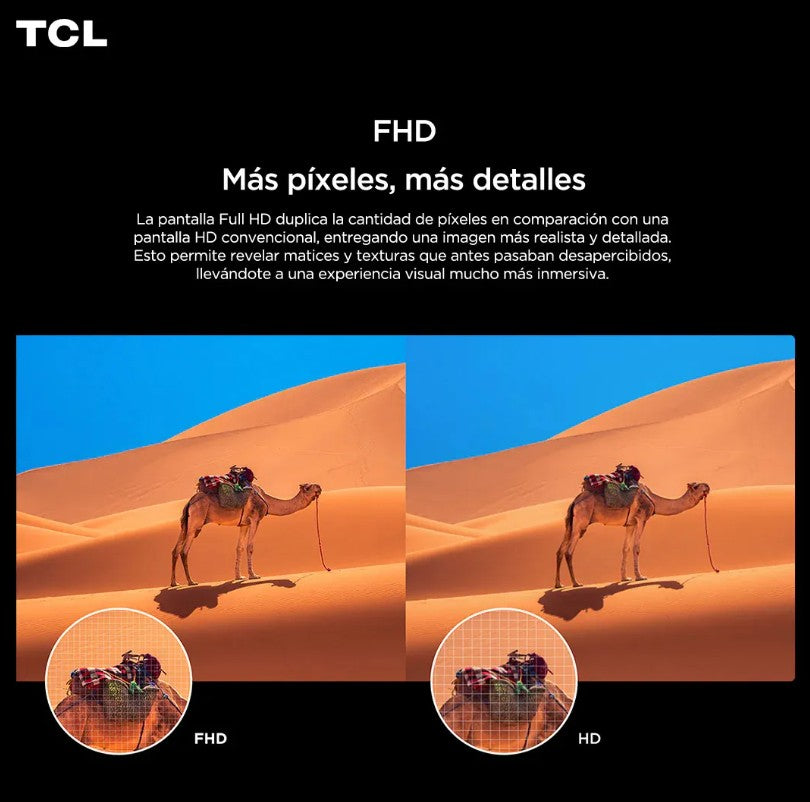 El diseño moderno de biseles delgados maximiza el área visible de pantalla y se integra con estilo en cualquier ambiente. La TCL 43″ QLED Full HD es una opción versátil para quienes buscan calidad de imagen, funciones inteligentes y conectividad completa en un televisor de tamaño compacto.