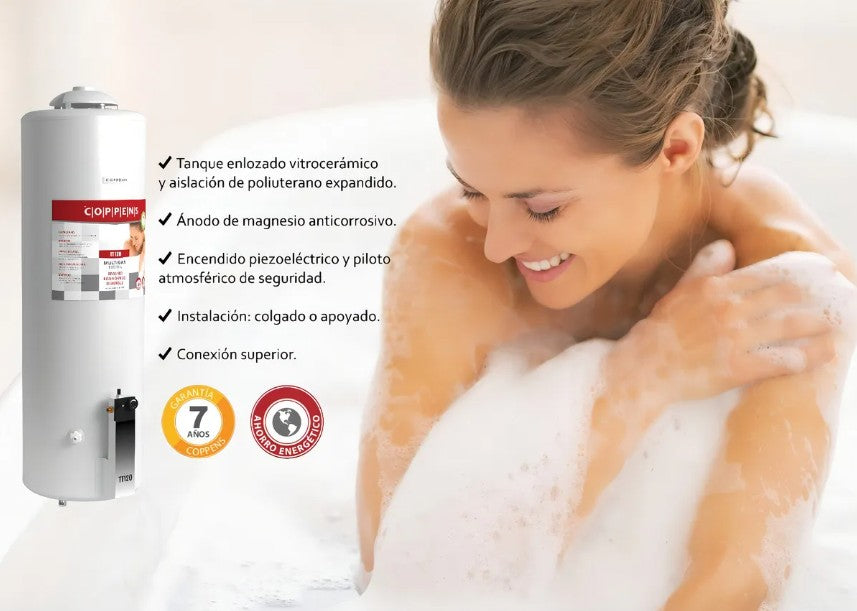El Termotanque a gas Coppens TTQ120 Multigas 3 llaves es una solución eficiente y confiable para el suministro de agua caliente en el hogar. Con una capacidad de 120 litros, este termotanque está diseñado para cubrir las necesidades diarias de agua caliente en baños, cocinas y lavaderos, ofreciendo un desempeño constante y seguro.