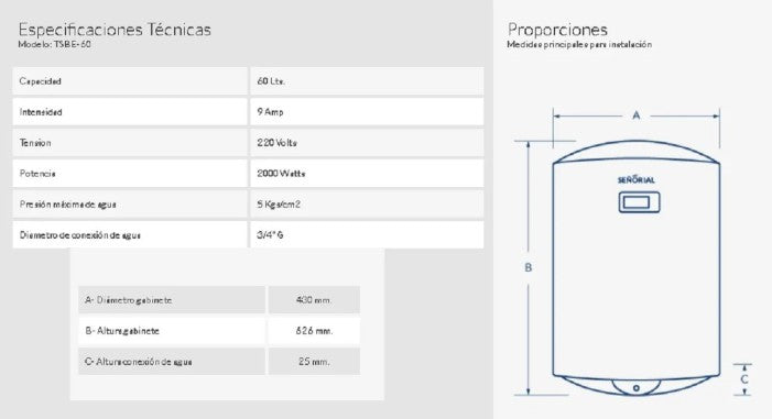 El Termotanque Eléctrico Señorial Black TSBE-60 de 60 litros es una solución eficiente, segura y moderna para el suministro de agua caliente sanitaria en el hogar. Diseñado con tecnología avanzada y materiales de alta calidad, garantiza excelente rendimiento, bajo consumo energético y larga vida útil.